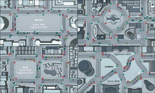 Every time a car find its way through , get a point. Start first city map. If enough points win. unlocks city map. submitted global highscore board powered by Scoreloop.